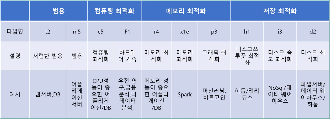 - 안전하고 크기조정이 가능한 컴퓨팅 파워를 클라우드에서 제공하는 웹 서비스