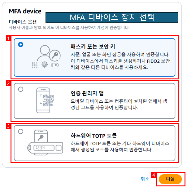 1️⃣ 패스키 또는 보안키: 핸드폰 장치 또는 노트북/컴퓨터 장치 내에 토큰을 저장해 사용하는 방식